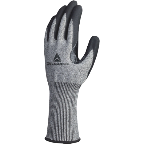 Support : Tricot – DELTAnocut | Coating : Grip-textured nitrile – Palm Coating | Reinforcements : Thumb-index | Long cuff | Gauge : 15