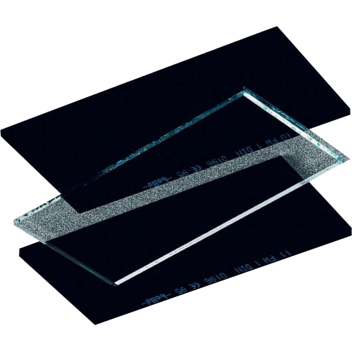 Pack of 5 clear polycarbonate screens, 108 x 51 mm. Fits CASOUD3 welding helmet and CASOUD2HE welding mask. Thickness: 1.8 mm